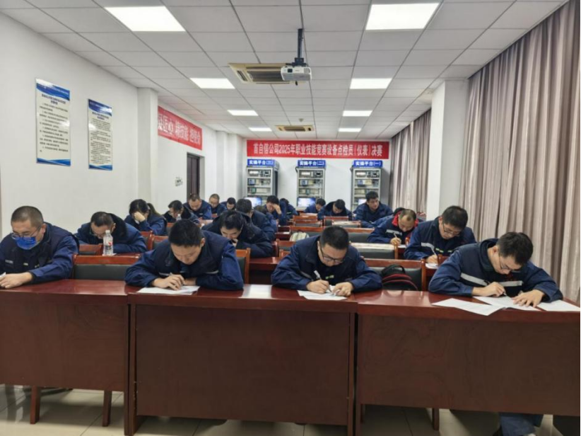 比赛过程中,参赛选手们以严谨的态度、娴熟的技能投入竞技:理论考试时沉着作答,精准解读检修规范;实操环节中,他们熟练运用检测工具,快速识别设备潜在问题,展现出首自信职工过硬的专业素养与争先创优的精神风貌。首自信公司领导亲临考试现场,鼓励选手们以赛为媒加强交流学习,将技能提升转化为推动企业发展的动力。