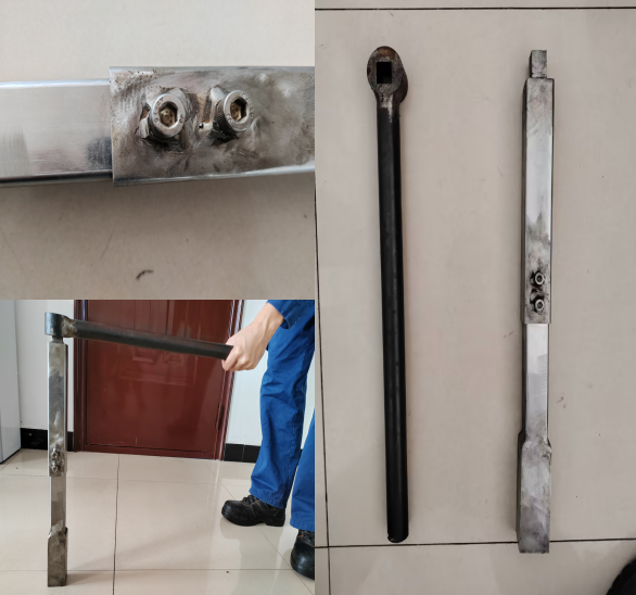 首自信公司成立了冷轧作业区创新团队,精心研制了轧机油压传感器拆卸工装。该工装由2件工具组成特制型套筒工装,一件是加长套筒底部为方形套筒,参照油压传感器本体尺寸制作而成,筒身有两颗螺丝,可根据需求调节套筒筒身的伸缩高度,顶部为四方形固定扣公头。另一件是加长杆顶部为圆型,内有方形孔洞,为方形扣母头。